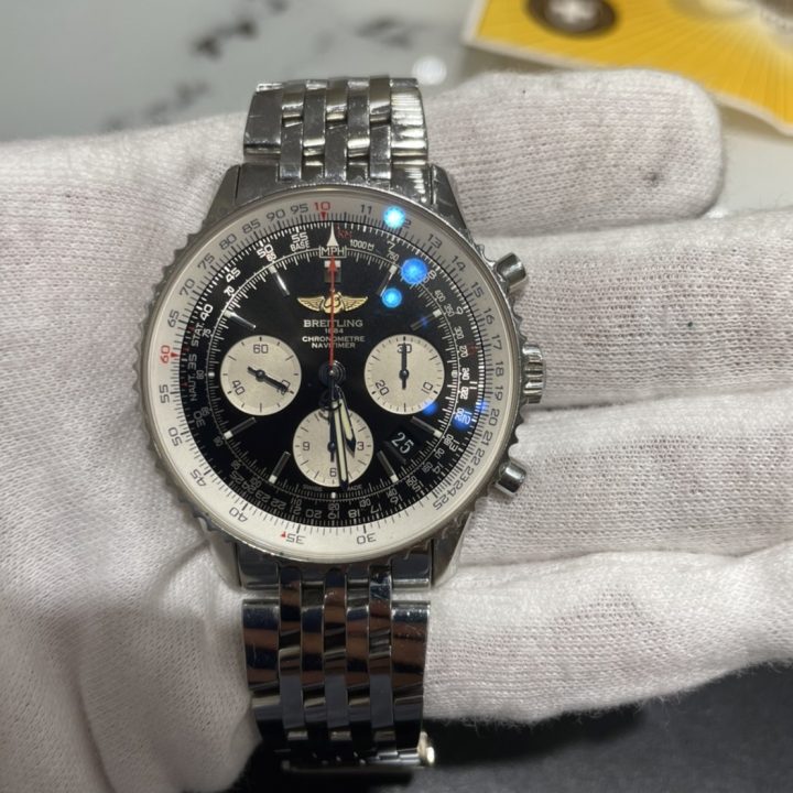 ブライトリングは航空時計ブランドとして世界的に知られており、ナビタイマーはその象徴的なシリーズです。海外でも知名度が高く、中古市場でも流通しているモデルです。