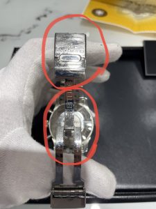 このように凹みキズが付いていると査定に大きく影響してしまいますので、時計を着用している時はぶつけたりしないようにお気を付け下さい。