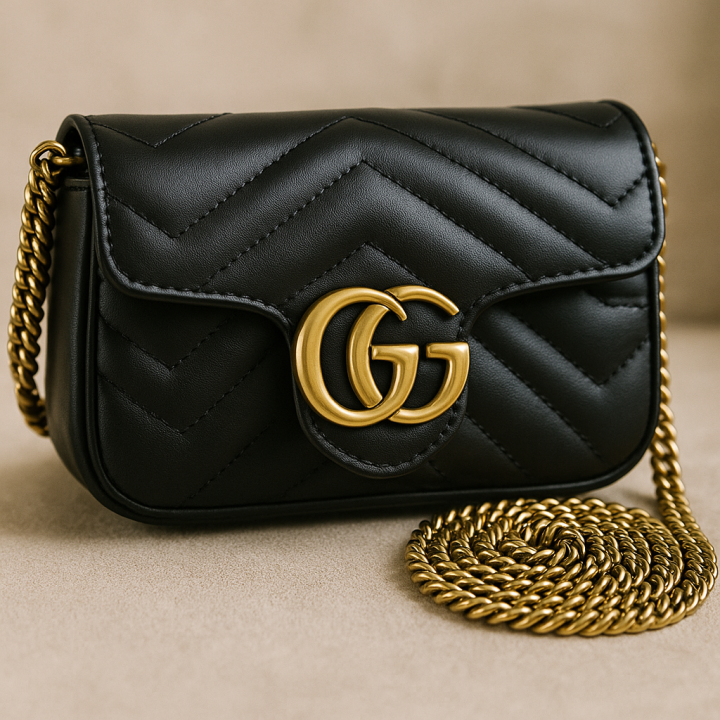 今回は、グッチの大人気シリーズ「GGマーモント ショルダーバッグ(ブラック×ゴールドチェーン)」を買取いたしました。上質なマトラッセレザーに立体的なGGロゴが映える、時代を超えて愛される定番アイテムです。
