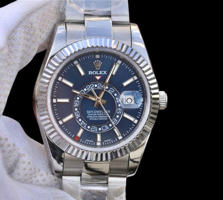 スカイドゥエラーは、ロレックスの中でも“最も複雑なメカニズム”を搭載しているシリーズとして知られています。アニュアルカレンダーとデュアルタイム表示を備え、旅行者や国際的に活動する方から高い支持を得てきました。336934は前モデル326934の進化版で、ムーブメントの改良に加え、ラグの形状やダイヤルのバランスが見直され、着け心地が一段と向上。特にブルーダイヤルは光の当たり方によって深みが変化し、気品と存在感を併せ持つ仕上がりになっています。フルステンレスではなく、ホワイトゴールドベゼルを組み合わせることで“エレガンスとスポーティさの中間”という絶妙な魅力が生まれ、どの年代からも支持を集める理由となっています。また、ラグジュアリー路線のモデルながら日常使いにも適しており、“実物を見た瞬間に心が動く時計”という声も多くいただきます。