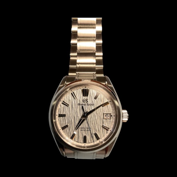 SLGH005は、グランドセイコーの新世代メカニカルムーブメント「キャリバー9SA5」を搭載したモデルとして登場しました。最大の特徴は、白樺林をモチーフにした独特の文字盤デザインで、日本の自然美を表現した繊細な質感が高く評価されています。ケース径40mm、エボリューション9スタイルと呼ばれる新しいデザイン哲学を採用し、視認性・装着感・存在感のすべてを高次元でバランスさせた一本です。性能面でも、毎時36,000振動のハイビートでありながら、約80時間のパワーリザーブを実現しており、技術力の高さを象徴するモデルと言えます。