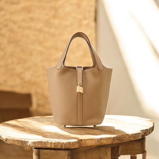 ピコタンは、馬の水桶をモチーフにしたシンプルなフォルムが特徴のバッグで、エルメスらしい遊び心と上質な素材感が融合したモデルです。ロック金具が付いたピコタンロックは、防犯性とデザイン性を兼ね備え、日常使いしやすい点が人気の理由となっています。PMサイズはコンパクトながら必要な荷物がしっかり収まり、腕に掛けても手持ちでもバランスが良いことから、幅広い年齢層に支持されています。カラーや素材のバリエーションが豊富で、好みに合わせて選べる点も魅力です。