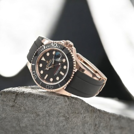 ヨットマスター40 Ref.126655は、エバーローズゴールド製ケースとマットブラックのセラクロムベゼルを採用し、ラグジュアリーとスポーツを両立したデザインが特徴です。オイスターフレックスブレスレットは装着感が良く、日常使いしやすい点も支持されています。派手すぎず、それでいてロレックスらしい存在感があり、長く愛用できるモデルとして人気があります。