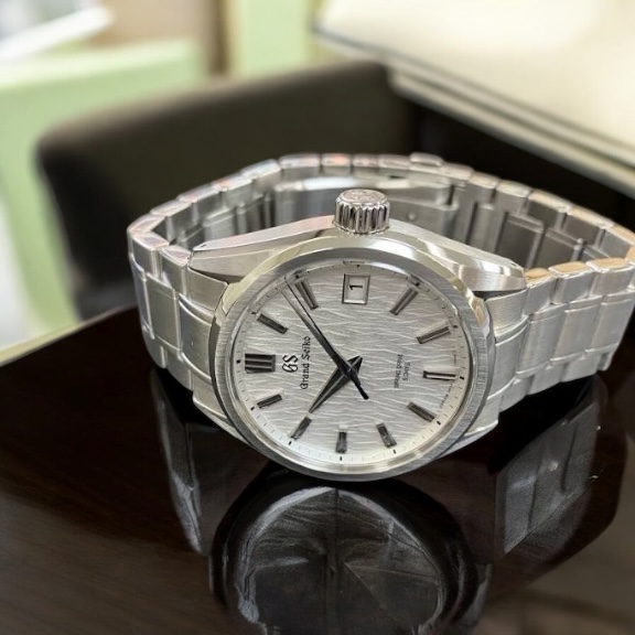 SLGA009は、グランドセイコーの中でも、スプリングドライブの技術力を象徴するモデルとして位置づけられています。特徴的なのは、繊細な型打ちが施された文字盤と、ケース・ブレスレットの仕上げ精度です。派手さはありませんが、実用性と審美性を高い次元で両立しており、長く使える時計として支持されています。海外市場でも評価が進み、近年は日本国内だけでなく、グローバルでの需要も安定しています。