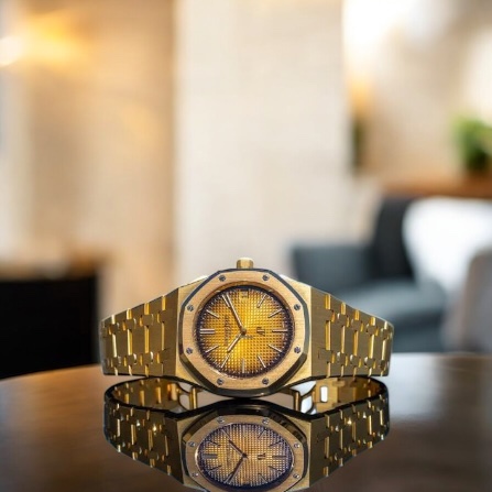 ロイヤルオーク 16202BAは、イエローゴールド素材を全面に使用したラグジュアリー性の高いモデルです。薄型ムーブメントを搭載し、ロイヤルオーク本来のデザインバランスを損なうことなく、金無垢ならではの重量感と存在感を両立しています。クラシックな雰囲気を持ちながらも、現代的な高級スポーツウォッチとして確固たる地位を築いている一本です。