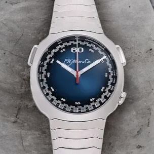 ストリームライナー クロノは、H.モーザーらしいミニマルな美学と高度な機構を両立させたクロノグラフモデルです。ケースとブレスレットが一体化した流線型のデザインは、一見すると控えめですが、装着した際の完成度と質感は非常に高く、量産ブランドとは一線を画します。ムーブメントには自社製クロノグラフを採用し、文字盤の情報量を抑えながらも機械的価値をしっかり持たせている点が評価されています。派手さよりも“長く所有できる一本”を求める層から支持されやすいモデルです。