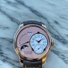オクタ・ルナはF.P.ジュルヌの中でも、実用性と詩的な機構を両立させたモデルです。特徴は年次カレンダーとムーンフェイズを備えつつ、極端に複雑さを前面に出さない設計思想にあります。文字盤は一見シンプルですが、配置バランスや針の動き、月齢表示の位置など細部まで計算されており、長く使うほど完成度を実感しやすい構成です。素材や仕様によって印象が大きく変わるため、同じオクタ・ルナでも評価に差が出やすい点も特徴といえます。