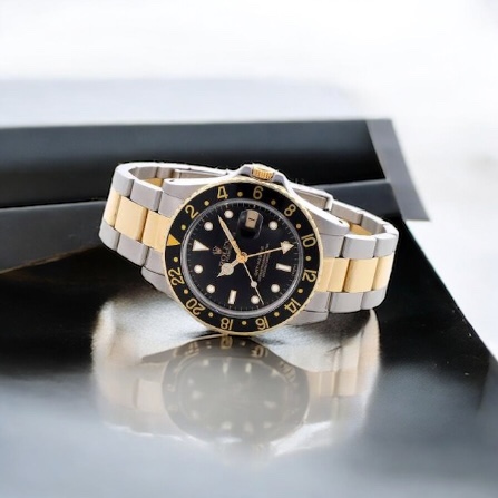 16753はGMTマスターIIの中では比較的落ち着いた印象を持つモデルで、黒系ダイヤルを中心に展開され、スポーツ性とドレス感を両立したデザインが特徴です。純粋なステンレスモデルほどの爆発的な人気はない一方で、コンビならではの重厚感やヴィンテージロレックスとしての雰囲気を評価する層は根強く存在します。特に近年は「派手すぎないコンビ」を求める層からの需要が安定しており、状態が良い個体については想像以上の評価がつくケースもあります。
