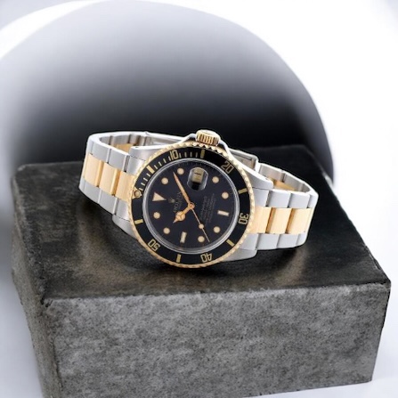 ロレックス サブマリーナー 16803は、1980年代後半から1990年代前半にかけて製造されたコンビモデルで、ステンレススチールとイエローゴールドを組み合わせた仕様が特徴です。サブマリーナーの実用性と、ゴールド素材の華やかさを併せ持つ立ち位置にあり、スポーツモデルでありながらラグジュアリー性も感じられるデザインが支持されてきました。アルミベゼル、トリチウム夜光、当時のケースプロポーションなど、現行モデルとは異なる要素を多く残しており、ヴィンテージ的な魅力を持ちながらも日常使いが可能な点が評価されています。完全なヴィンテージにはまだ踏み切れないが、現行モデルとは違う個性を求める層に選ばれやすい立ち位置が、16803の特徴といえるでしょう。