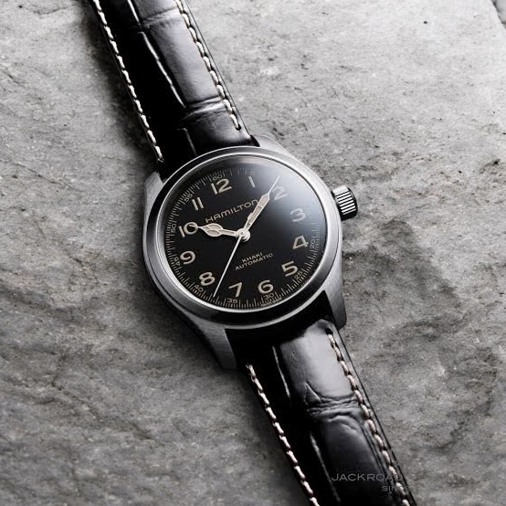 ハミルトン カーキ フィールド マーフ 38 H70405730は、映画との関わりを背景に誕生したマーフウォッチを、日常使いしやすい38mmケースに落とし込んだモデルです。オリジナルの42mmモデルに比べ、装着感が向上し、日本人の腕にも自然に収まりやすいサイズ感が評価されています。ブラックダイヤルにホワイトのインデックス、視認性を重視したシンプルなデザインは、ミリタリーウォッチの系譜を感じさせつつも、過度な無骨さを抑えた仕上がりです。ムーブメントには自動巻きを採用し、実用性とブランドの信頼性を両立しています。限定モデルではないものの、明確なストーリーと完成度の高さから、単なる量産モデル以上の位置付けで見られることが多いのが特徴です。