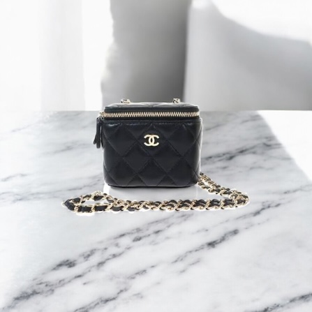 シャネル バニティ ケース(ミニ)は、コスメケースをルーツに持つ円筒型またはスクエア寄りのフォルムが特徴で、近年のシャネルバッグの中では比較的コンパクトなサイズ感が支持されています。特にミニサイズはアクセサリー感覚で持てる点が評価され、実用性とファッション性のバランスが取れたモデルとして位置付けられています。素材はキャビアスキンやラムスキンが中心で、カラーはブラックが圧倒的に流通の中心です。シャネルの定番バッグと異なり、生産数が多くないこと、シーズンによって仕様が微妙に変わることもあり、中古市場では「状態の良い個体」に需要が集中しやすい傾向があります。また、近年は海外バイヤーからの引き合いも増えており、国内需要だけで相場が形成されているモデルではない点が特徴です。