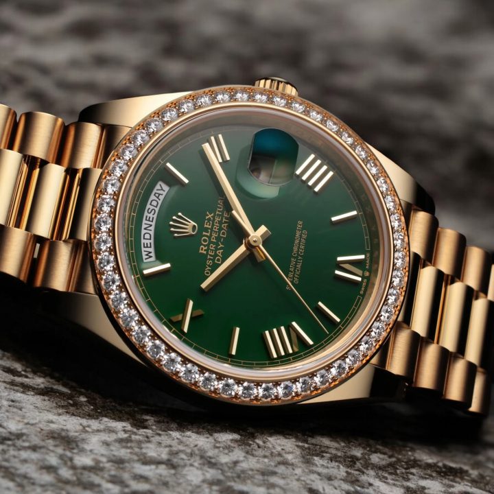 ダイヤベゼル仕様は、評価を押し上げる要素である一方、買い手を選ぶ要因にもなります。純正ダイヤであることは大前提ですが、セッティング状態、欠けの有無、輝きの均一性が厳しく見られます。市場では「純正ダイヤ×良コンディション」の個体に評価が集中しやすく、条件が揃えば同じデイデイト40の中でも上側レンジで成立しやすくなります。逆に、ダイヤの欠けや曇り、外装ダメージが重なると、評価は一気に調整される傾向があります。