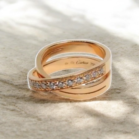 エタンセル ドゥ カルティエ リングは、カルティエの中でも非常に完成度の高いエタニティ系リングとして位置づけられています。リング全周、もしくは半周にわたりダイヤモンドが均一にセッティングされ、装飾を主張しすぎることなく、指元に上品な輝きを与えるデザインが特徴です。カルティエらしい繊細さと精度の高い石留めにより、日常使いにも耐えうる構造を持ちながら、ブライダルジュエリーとしての品格も保たれています。華美な装飾やトレンド性に依存しないため、年齢やシーンを問わず着用できる点が、このモデルが長く支持されてきた理由のひとつです。一方で、デザインが完成されているがゆえに、後継モデルや大幅な仕様変更が起こりにくく、「いつ売っても同じ価値」と誤解されやすい側面も持っています。