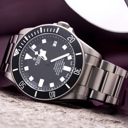 ペラゴスはチューダーのスポーツモデルの中でも非常に実用性の高いダイバーズウォッチだと感じています。チタンケースの軽さと高い防水性能を兼ね備えており、本格的なダイバーズウォッチとして完成度の高いモデルです。