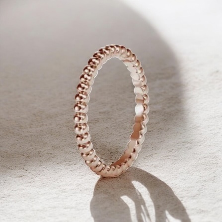 ペルレ リングはヴァンクリーフ&アーペルのペルレコレクションに属するジュエリーです。ペルレとはフランス語で「真珠」を意味する言葉であり、丸いビーズ状の装飾を連ねたデザインが特徴のシリーズです。ゴールドビーズを並べることで、シンプルなリングでありながら立体感のあるデザインに仕上がっています。