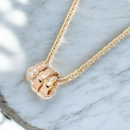 ブルガリはイタリア・ローマを代表するハイジュエリーブランドとして知られており、世界的にも高い知名度を持つブランドです。数多くのジュエリーコレクションを展開していますが、その中でもブランドを象徴するモチーフとして知られているのがセルペンティです。蛇をモチーフにしたデザインはブルガリのアイコンとして長く親しまれており、ネックレスも人気の高いジュエリーとして知られています。