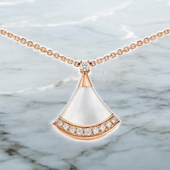 ブルガリ ディーヴァドリーム ネックレスは扇形のモチーフが特徴的なエレガントなジュエリーです。ブルガリの人気コレクションとして知られており、ブランドジュエリーとしての魅力を感じられるシリーズです。