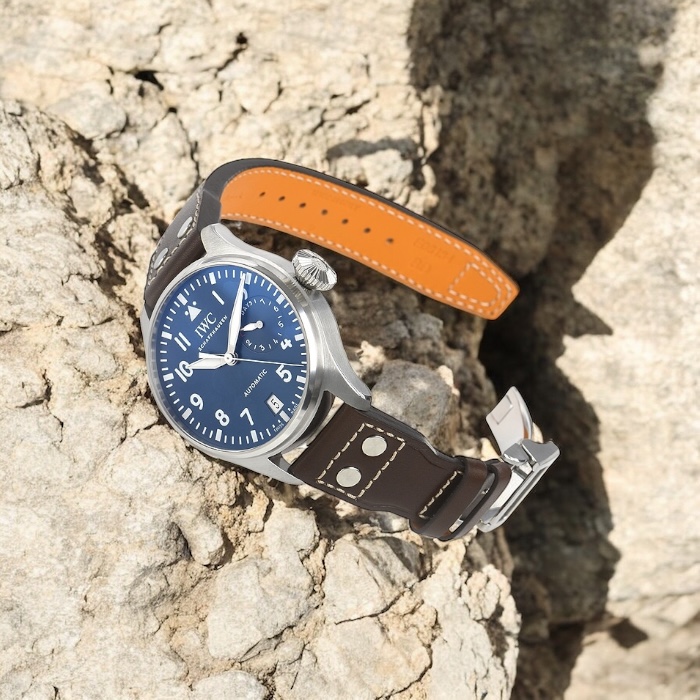 また大型のリューズもビッグパイロットシリーズの特徴です。航空時計はグローブを着用した状態でも操作できるよう設計されているため、操作しやすい大きなリューズが採用されています。こうした設計は航空時計としての歴史を感じさせる要素でもあります。
