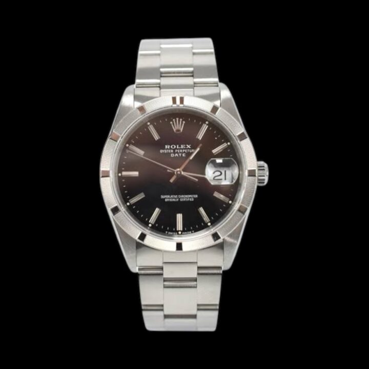 Ref.15210はオイスターパーペチュアルの中でも、エンジンターンドベゼルを採用したモデルです。スポーツロレックスとは異なり、シンプルなデザインと実用性を重視したモデルとして長く愛されています。