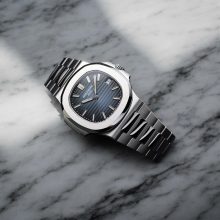 5711/1A-010はノーチラスシリーズの中でも最も象徴的な三針モデルとして位置づけられています。ステンレスケースにブルーダイヤルという構成は極めてシンプルでありながら完成度が高く、ラグジュアリースポーツの原点ともいえる存在です。ケース径は現代基準でもバランスが良く、薄型設計による装着感の良さは長年評価されてきたポイントの一つです。複雑機構を持たないミニマルな構成だからこそ、デザインの完成度や仕上げの質が際立ち、時計としての本質的な魅力が伝わりやすいモデルといえます。