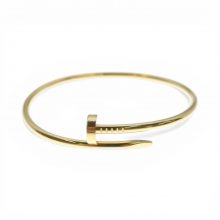 ジュストアンクルはカルティエのジュエリーコレクションの中でも個性的なデザインを持つシリーズです。釘をモチーフにしたデザインが特徴で、シンプルながらも存在感のあるジュエリーとして知られています。